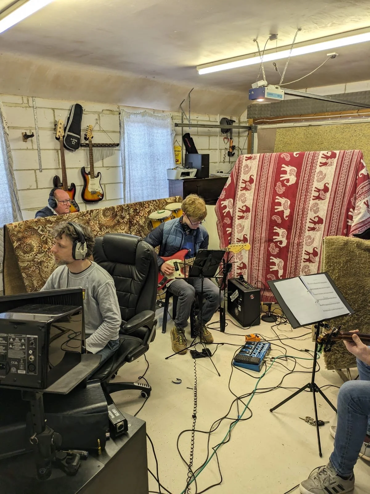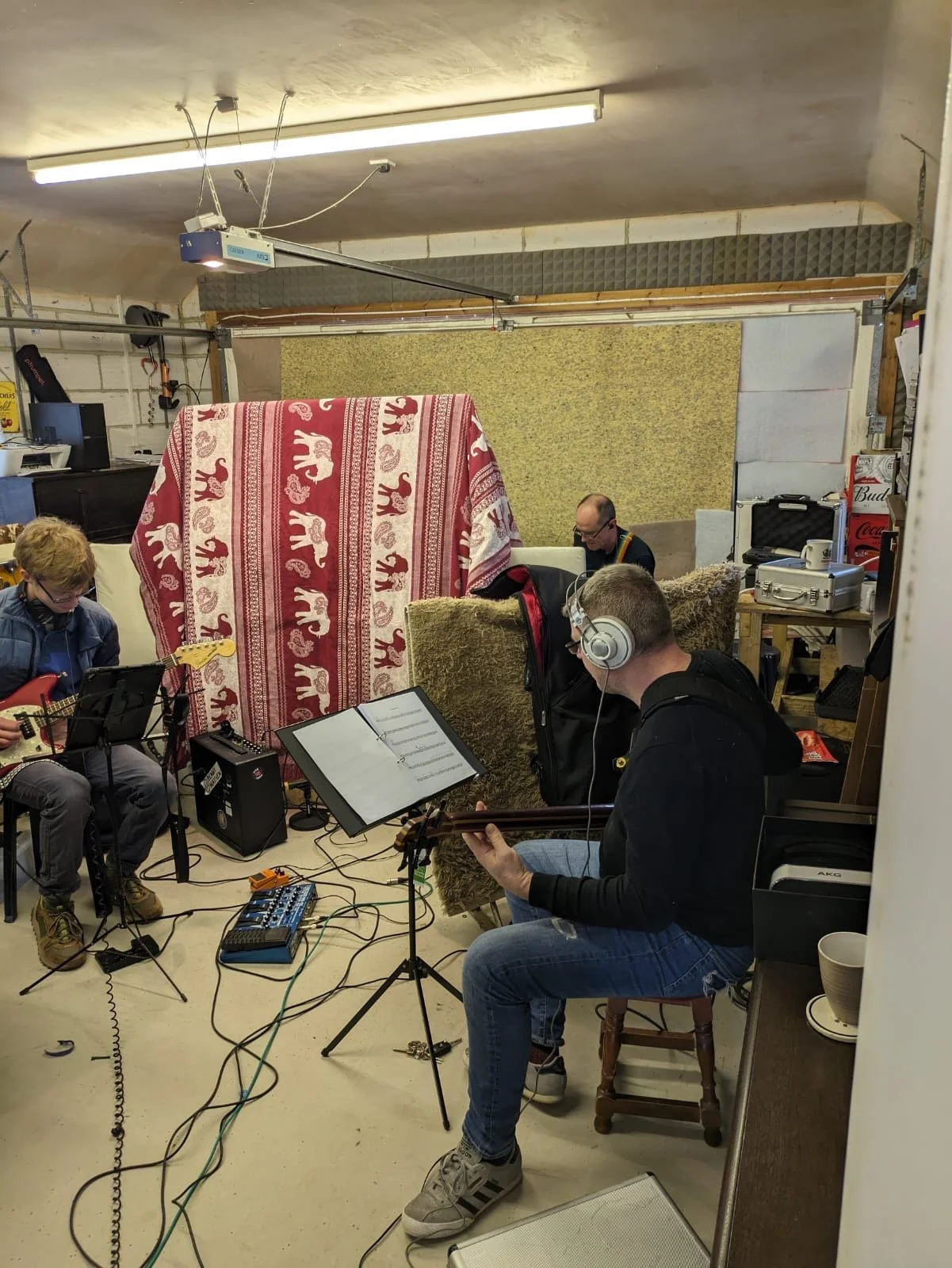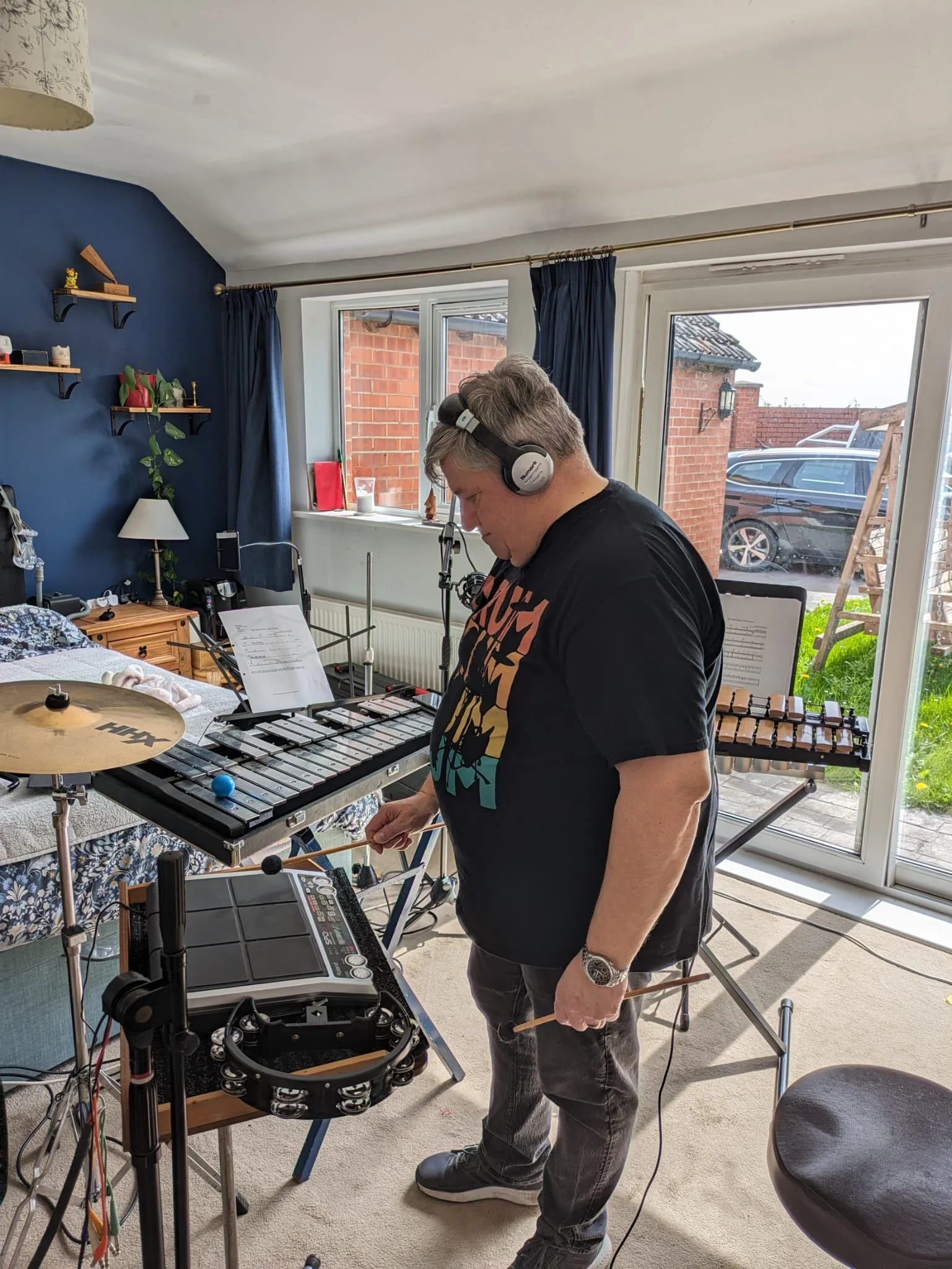 Next up was the percussion recordings. This was an epically fun day with Ash’s house being completely taken over by percussionists and guitars culminating in some awesome sounds and recordings. Thankyou to all involved, especially big Al (the best tuba player I have ever heard) for stepping in to play bass guitar and the loan of the extra equipment. Well done all and can’t wait to hear it all mixed together. The next couple of weeks bring the string players, woodwind players and the singers in to record their parts so we should then be able to offer fully orchestra played backing tracks and full versions of the songs to boot. Whoop whoop!